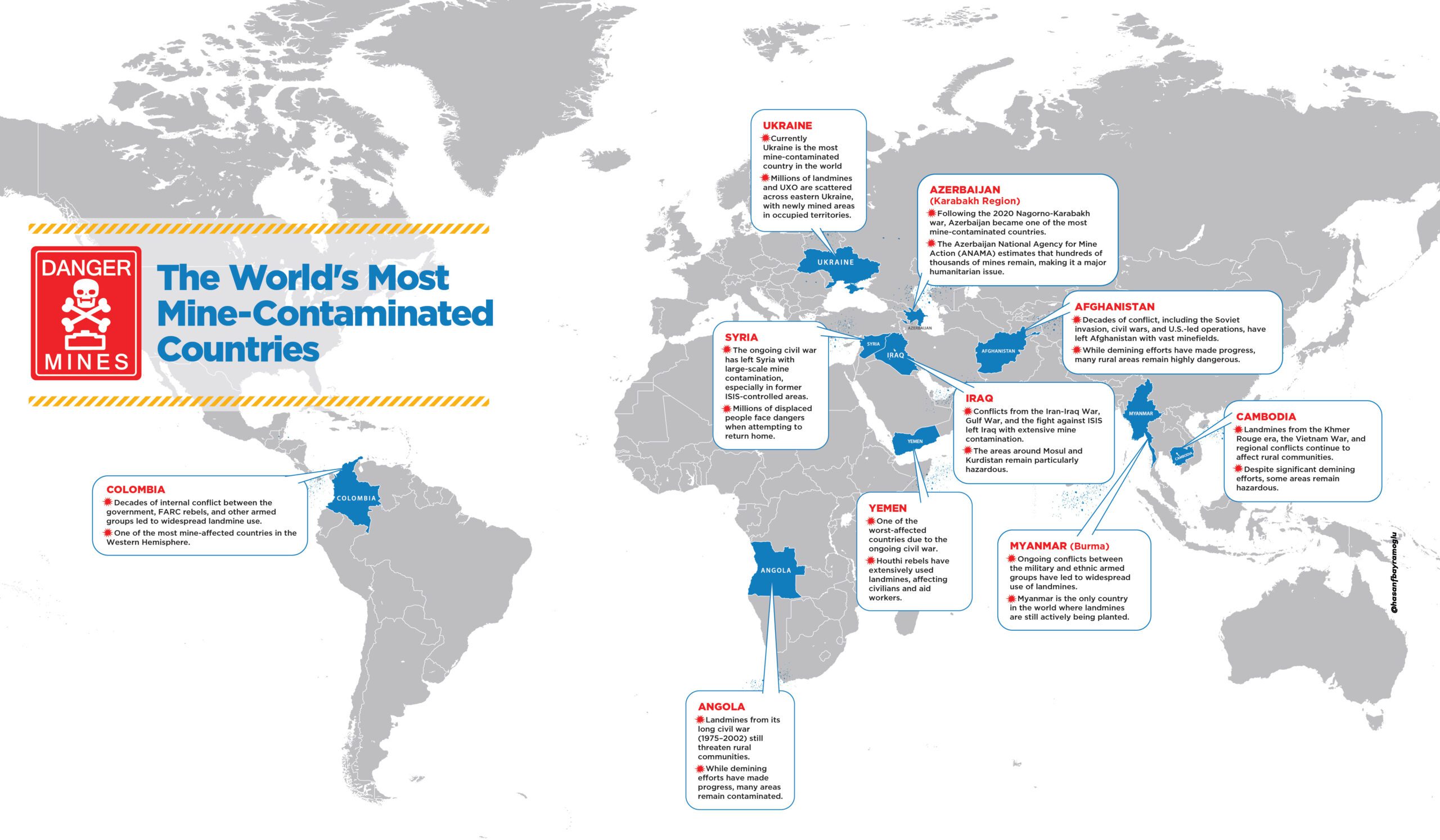 Landmines and unexploded ordnance (UXO) continue to claim innocent lives worldwide, remaining a deadly legacy of war long after conflicts end. In many countries, vast areas remain contaminated, making everyday activities like walking to school or playing outside life-threatening for children.