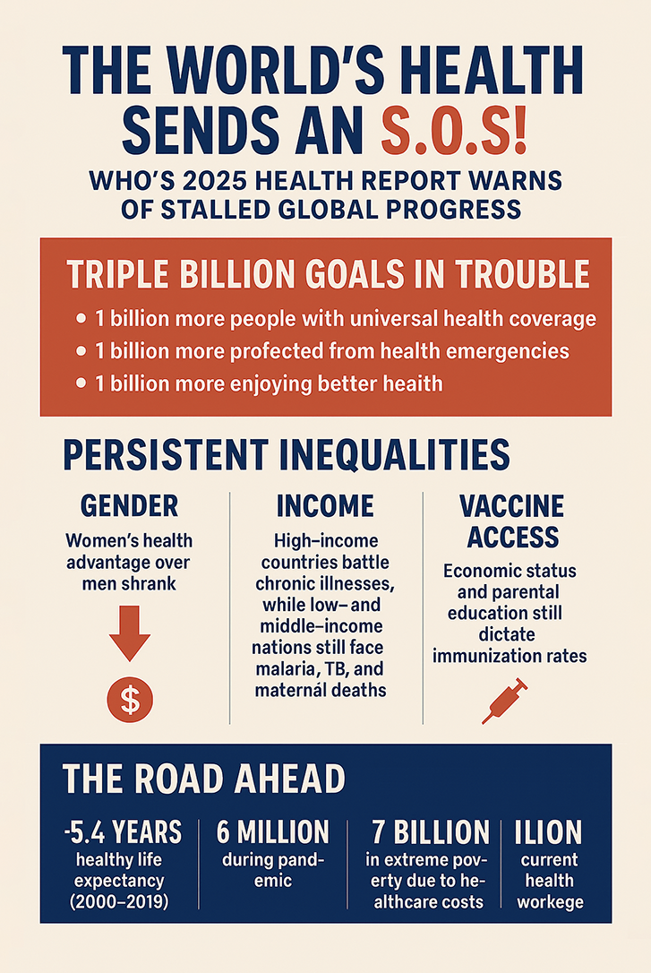 The report also shows how the pandemic magnified inequalities. Women’s edge in healthy life expectancy narrowed, not because men grew healthier, but because women carried heavier burdens from conditions like migraines, back pain, and depression. In wealthier nations, obesity and mental-health crises dominate the landscape, while in poorer countries, preventable diseases still claim countless lives. Without decisive action, WHO warns, the world could miss the chance to prevent an additional 700,000 maternal deaths and 8 million under-five deaths before the end of the decade.