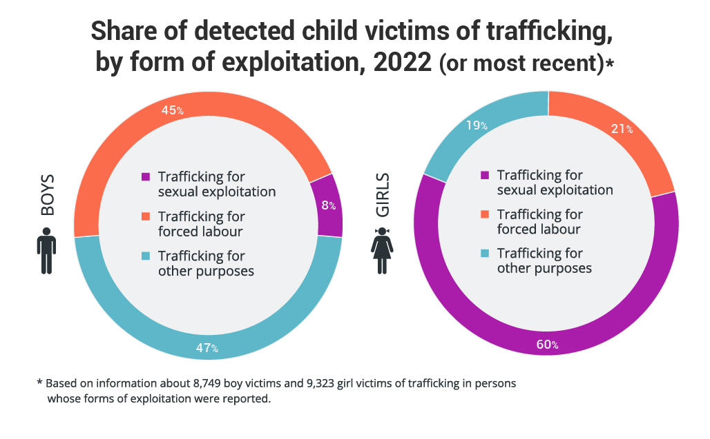 While anyone can be a victim of trafficking, women and girls remain disproportionately affected. As of 2022, 61 percent of detected victims were female, with 39 percent women and 22 percent girls.