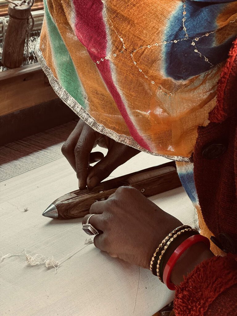 Empowering women, especially in the fashion supply chain, is not just the right thing to do; it’s essential to achieving the Sustainable Development Goals (SDGs). Women already make up at least 80% of garment industry workers globally. With support from the Fashion Impact Fund through its 2024 Skills Development Programme, they’ve launched a nine-month handloom training program aimed at deepening both economic and cultural impact. Throughout the program, up to 21 women will be trained in every stage of the handloom process, from preparing raw cotton and spinning yarn to mastering complex weaving techniques across varied thread counts.
