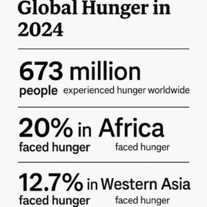 While southern Asia and Latin America showed notable improvement — with hunger dropping to 6.7% and 5.1%, respectively — the situation in Africa has deteriorated significantly. Over 307 million Africans, or more than 20 percent of the continent’s population, faced hunger in 2024. In Western Asia, hunger rose to 12.7 percent, affecting over 39 million people.